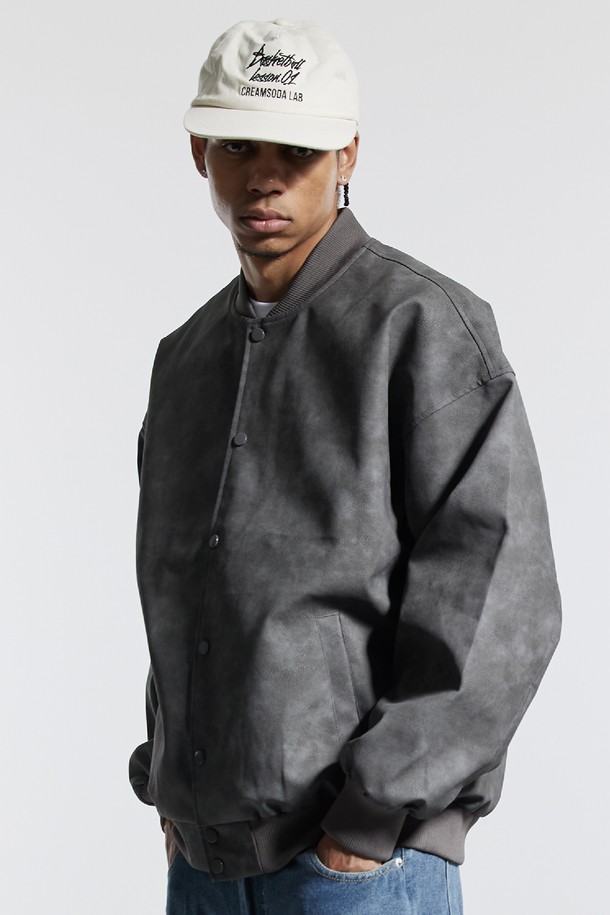 씨알에스디엘 쿼터 내츄럴 워시드 비건 레더 부클 자켓