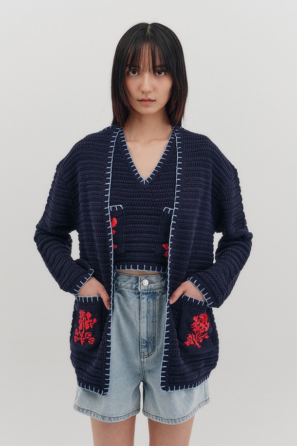 [K] 플로럴 자카드 니트 가디건 - 2컬러