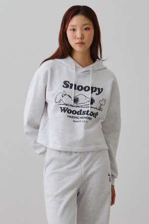 여성 SET-UP 스누피 그래픽 후드 크롭 티셔츠 FPDTS972F