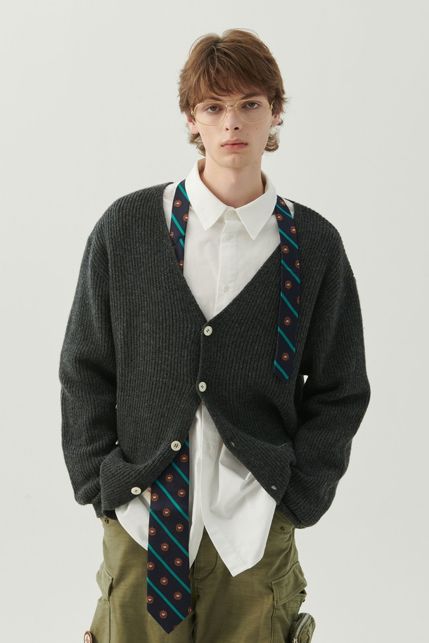 수퍼 파인 메리노 울 와플 니트 가디건 그레이