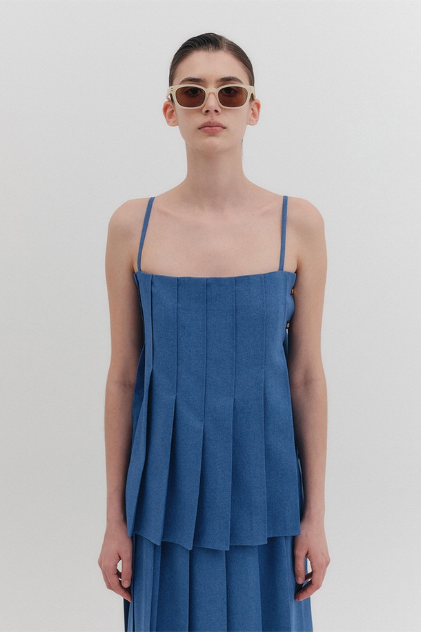 플리츠 슬리브리스 탑 - 블루