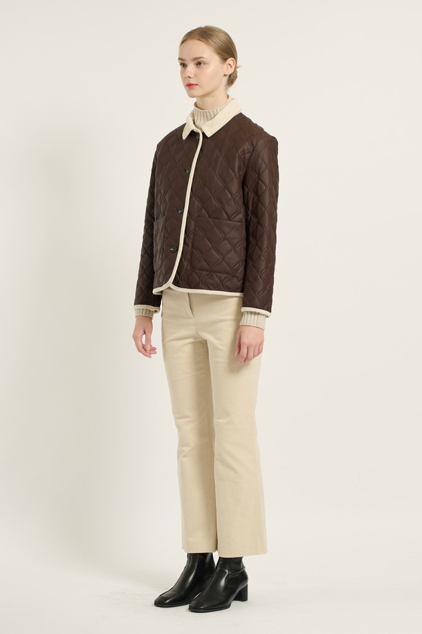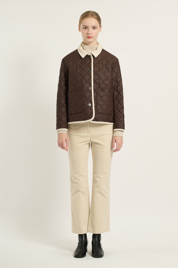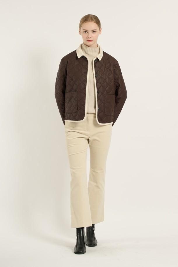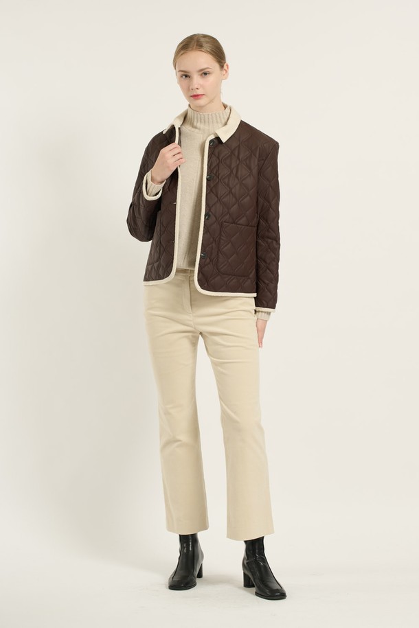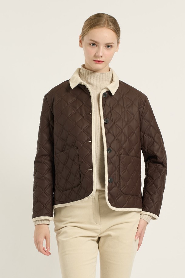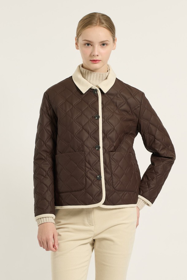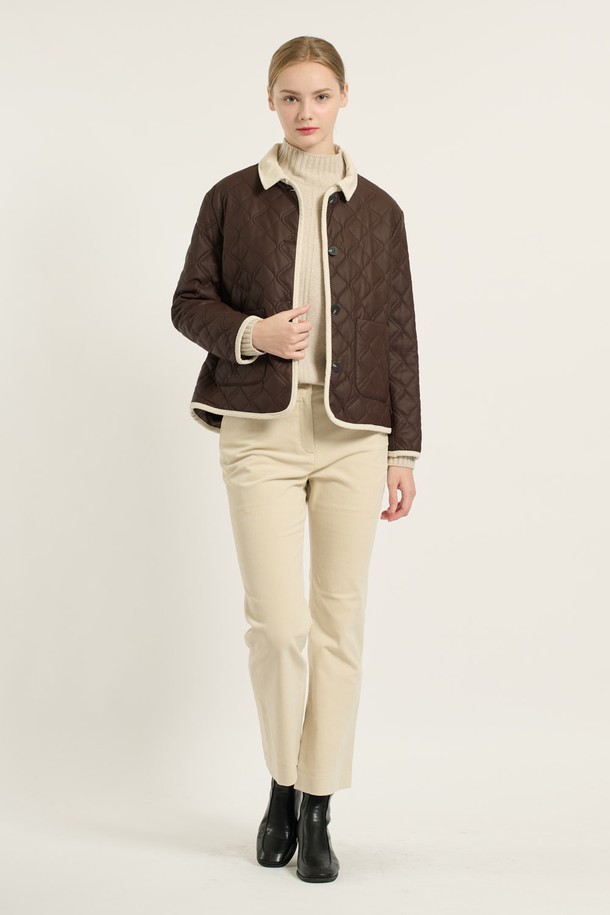 [25WT] 코듀로이 배색 카라 퀼팅 - BROWN B5D9I87174