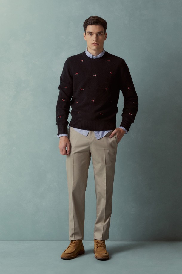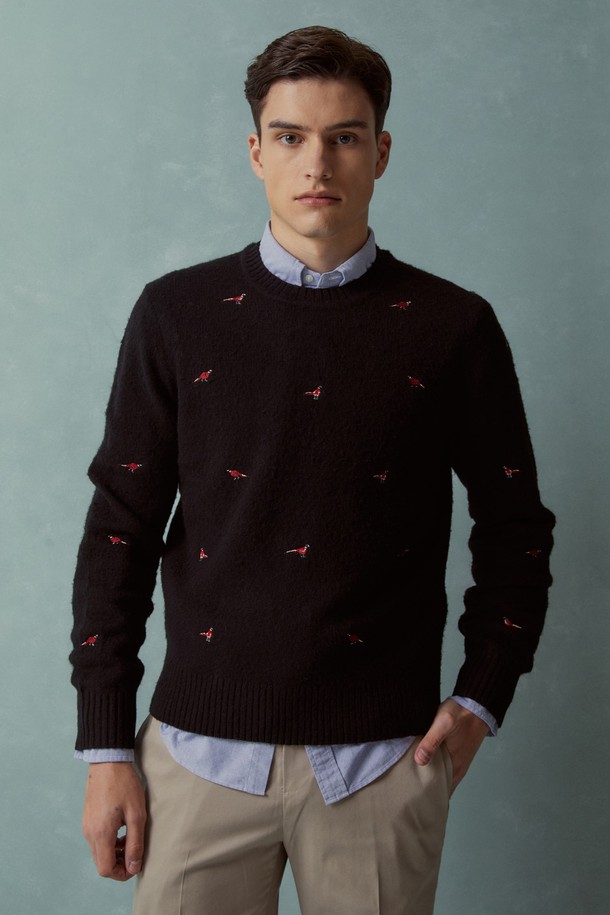 울 엘보 패치 크루넥 스웨터 (블랙) (BBWRMMF403)