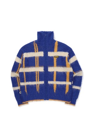헤어리 체크 집업 스웨터 BLUE