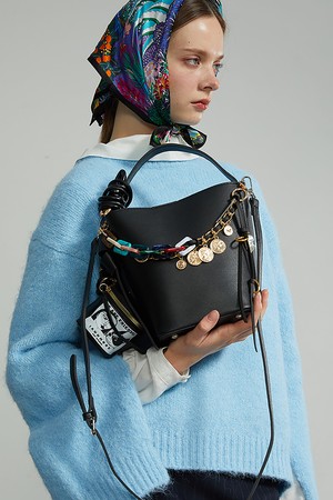 Charms embellished crossbody bucket bag_ 참 장식 버킷 백