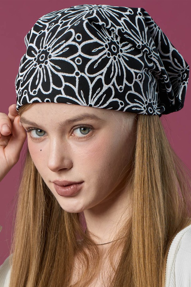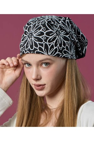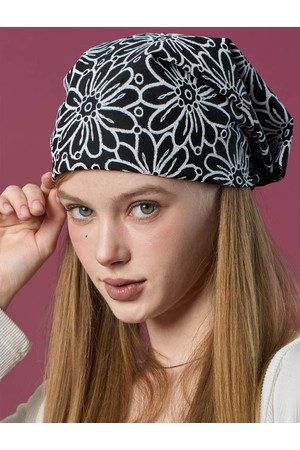 자외선차단 반다나 플라워 헤어두건 손수건 [BLACK]