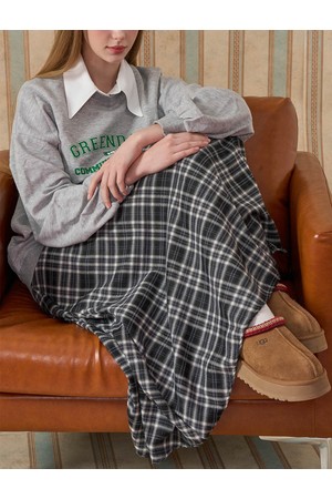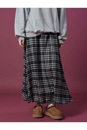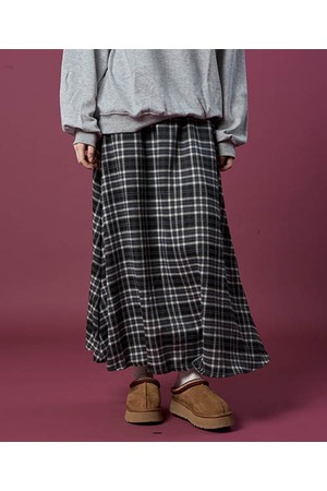 클래식 기모 도톰 체크 밴딩 롱스커트 [BLACK] 가을 겨울 ver.