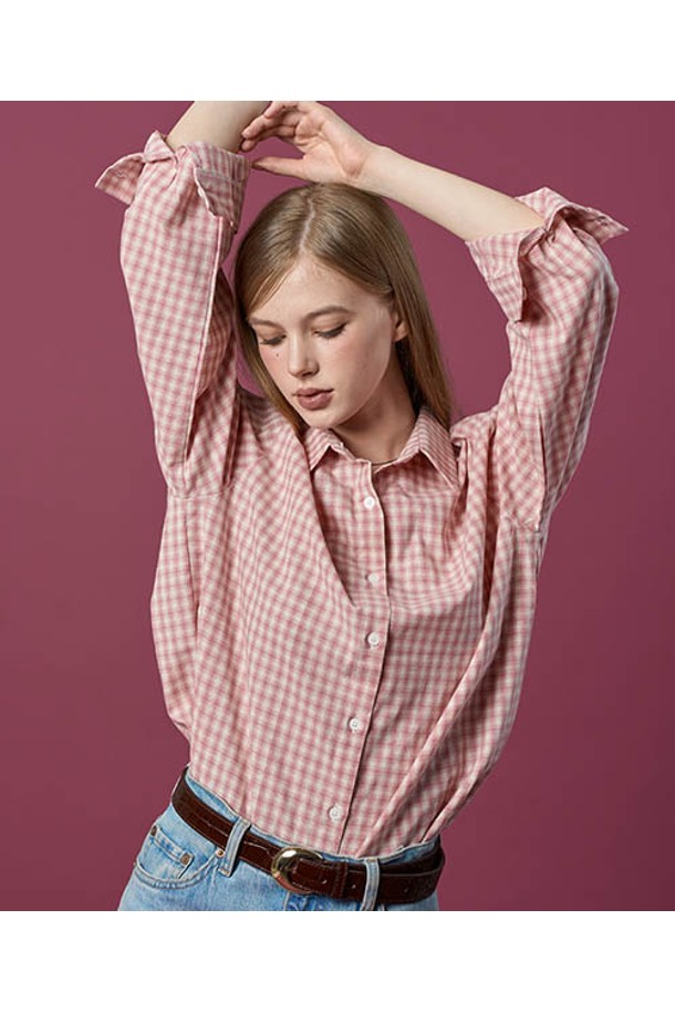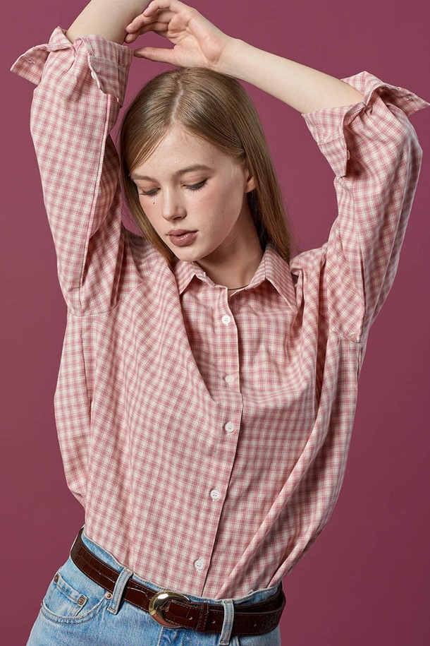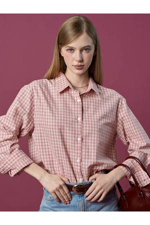 데일리 겉기모 클래식 오버핏 깅엄 체크 셔츠 [PINK] 긴팔티 ver.