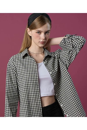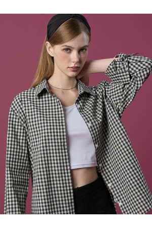 데일리 겉기모 클래식 오버핏 깅엄 체크 셔츠 [BLACK] 긴팔티 ver.