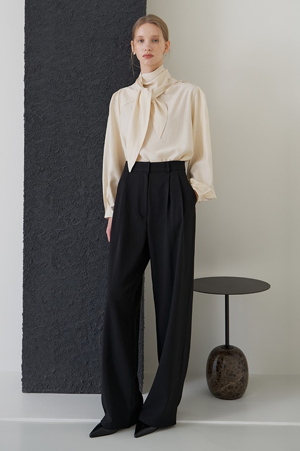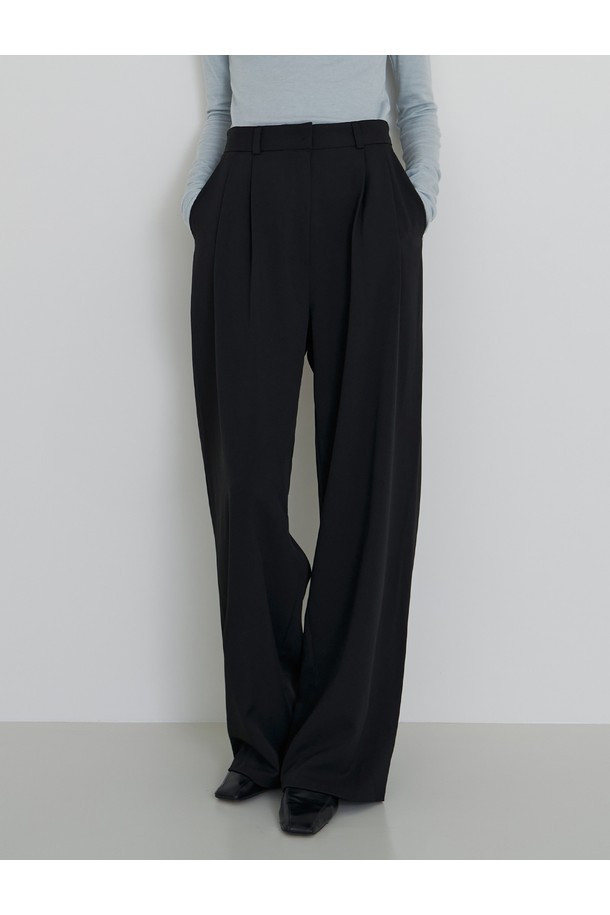 [S 4.3 예약발송] 르번 투턱 와이드 슬랙스 블랙
