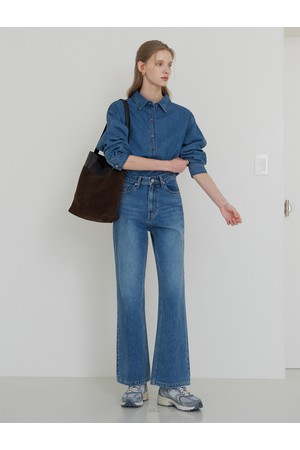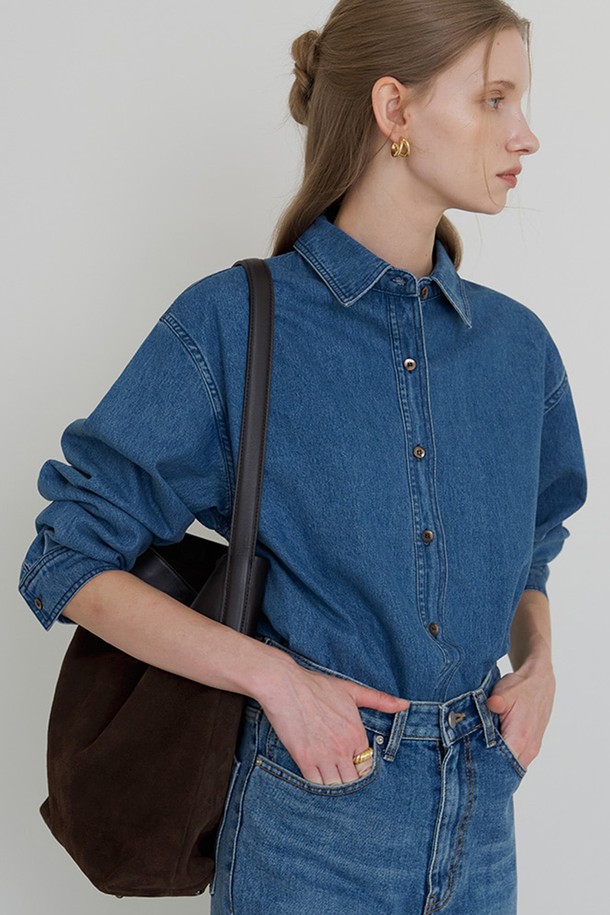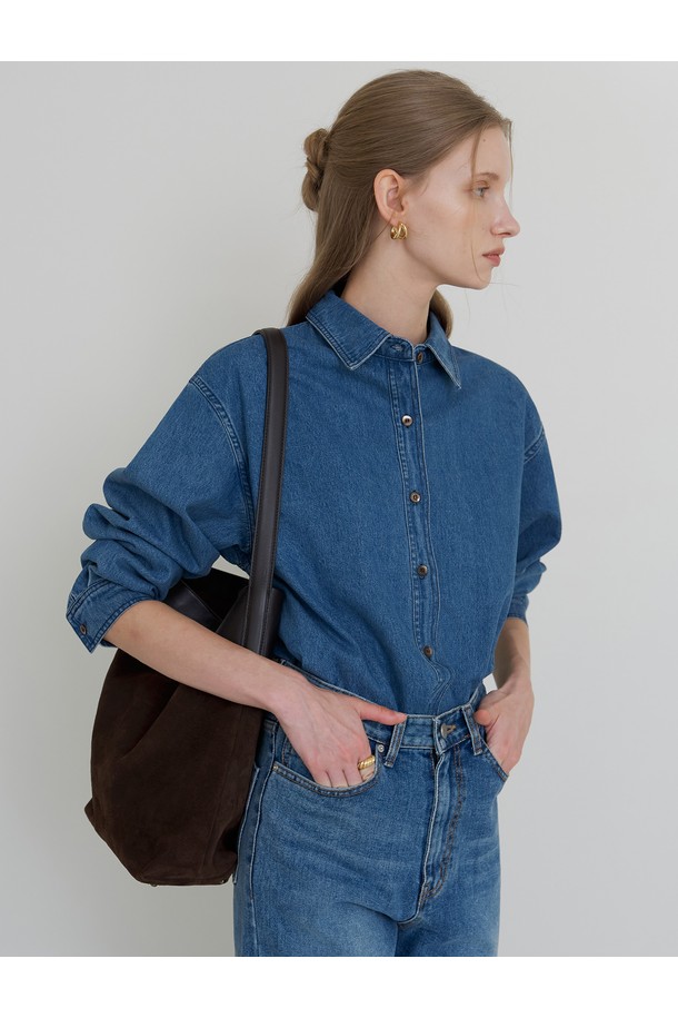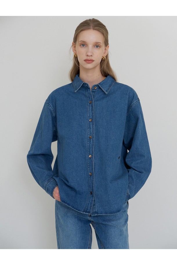 코어 데님 언발 셔츠 중청