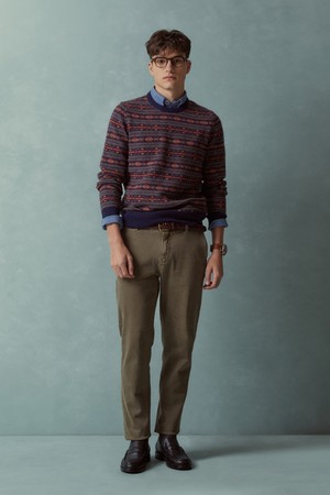 울 빈티지 페어아일 크루넥 스웨터 (그레이) (BBWRMFF402)