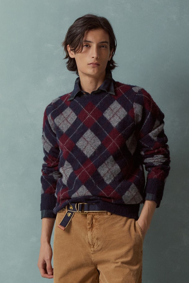 울 아가일 패턴 크루넥 스웨터 (멀티) (BBWRMMF402)