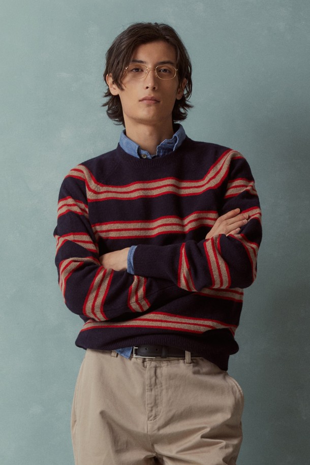 울 스트라이프 크루넥 스웨터 (멀티) (BBWRMMF401)