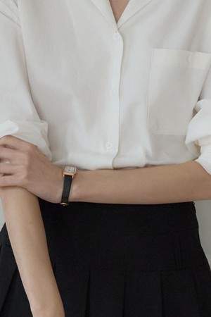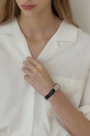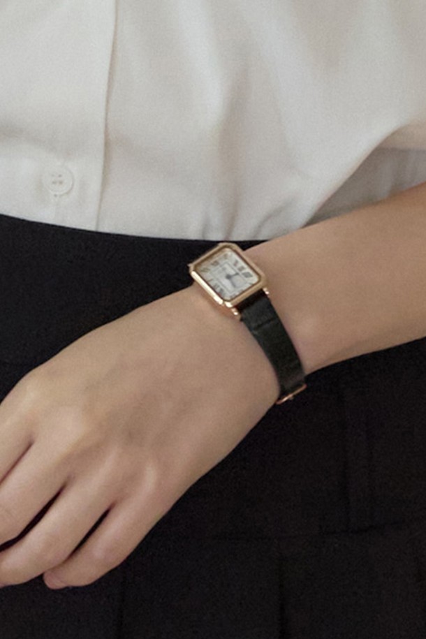 Square Gold Classic Leather Watch - Black