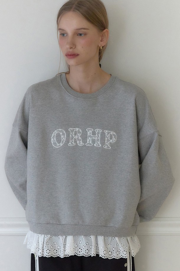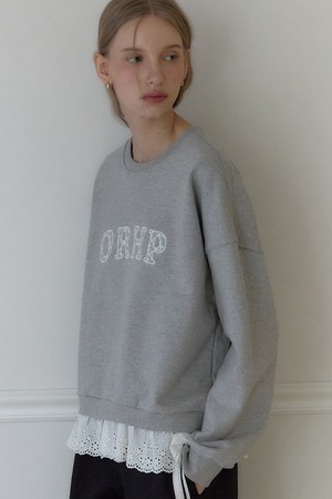 Lace Logo Applique Sweatshirt - Melange grey