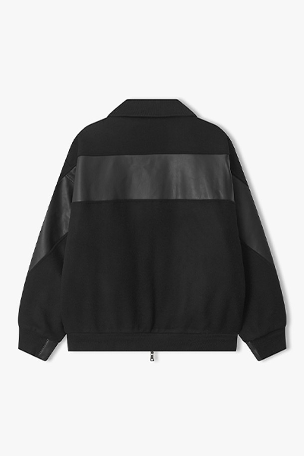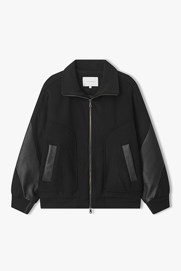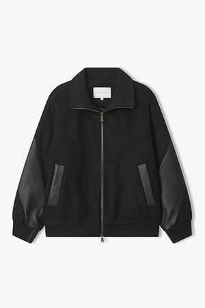 [25FW] LLW22682 블랙 캐시미어블랜드 레더 믹스 하이넥 바시티 점퍼