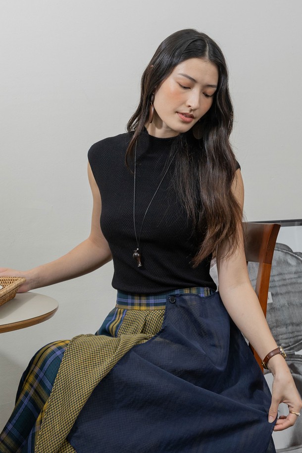 Simple sleeveless knit top_2color