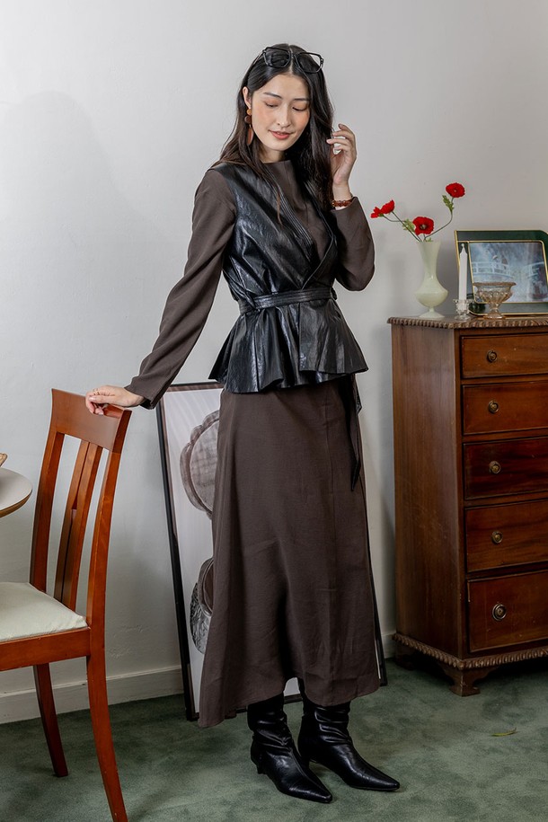 V-neck leather jacket vest_BLACK