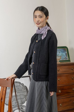 Round button knitted jacket_BLACK