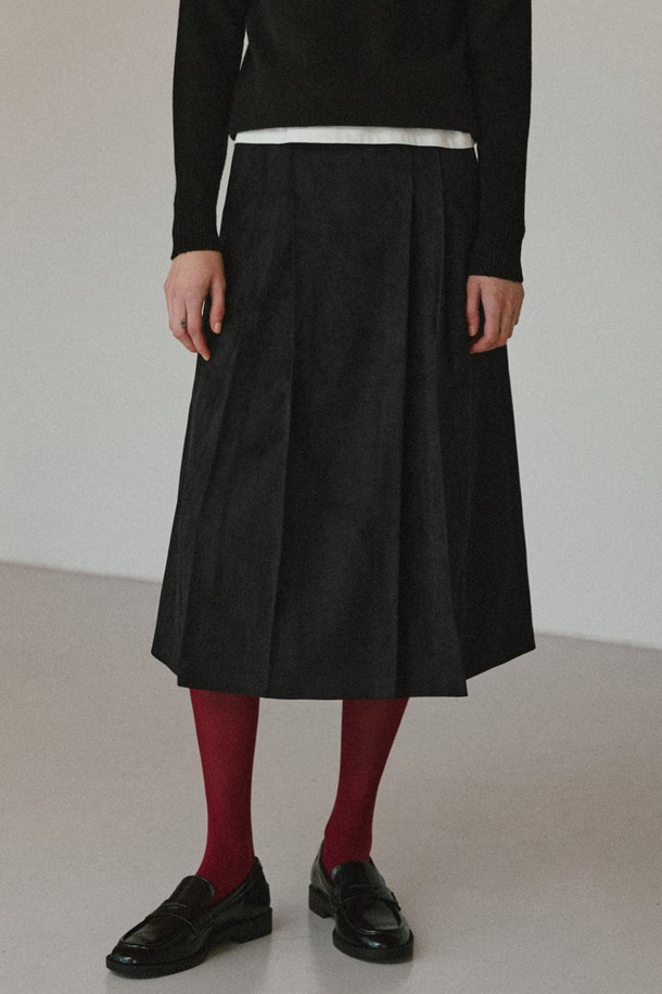 신세틱 스웨이드 플레어 롱 스커트 [블랙]