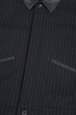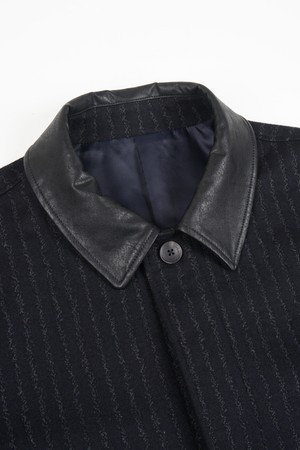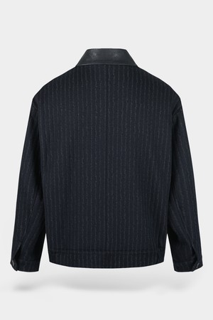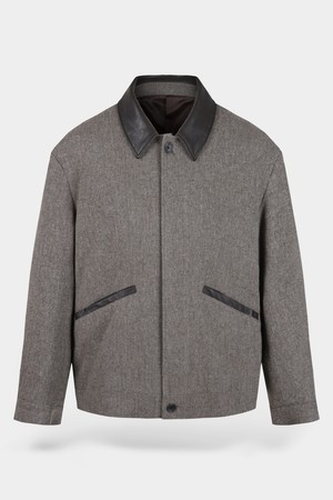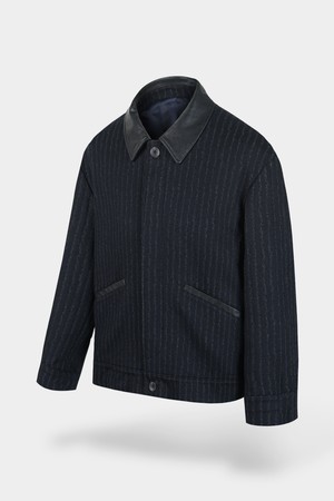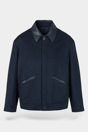 울 블렌드 레더 카라 블루종 자켓