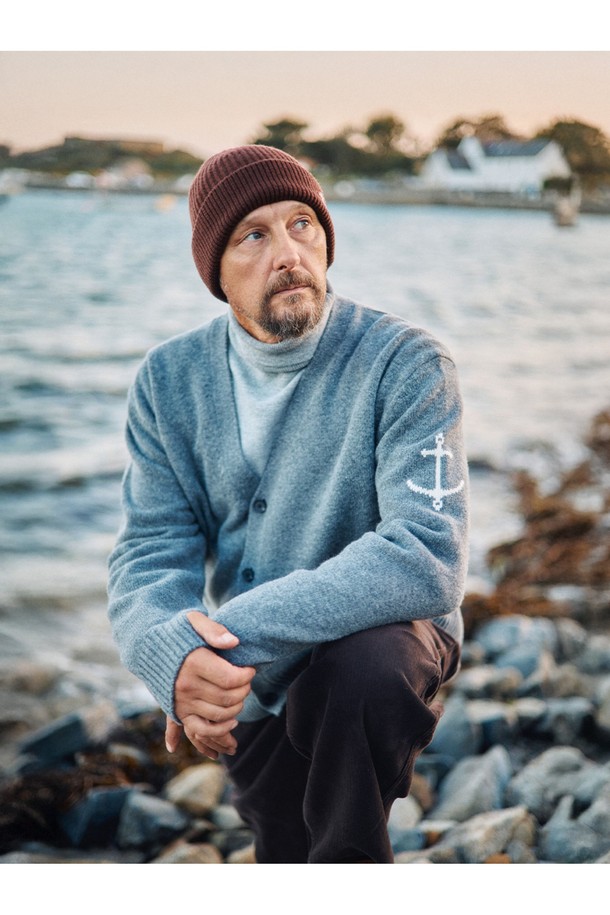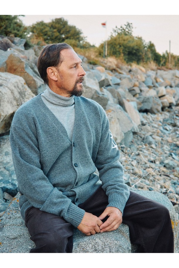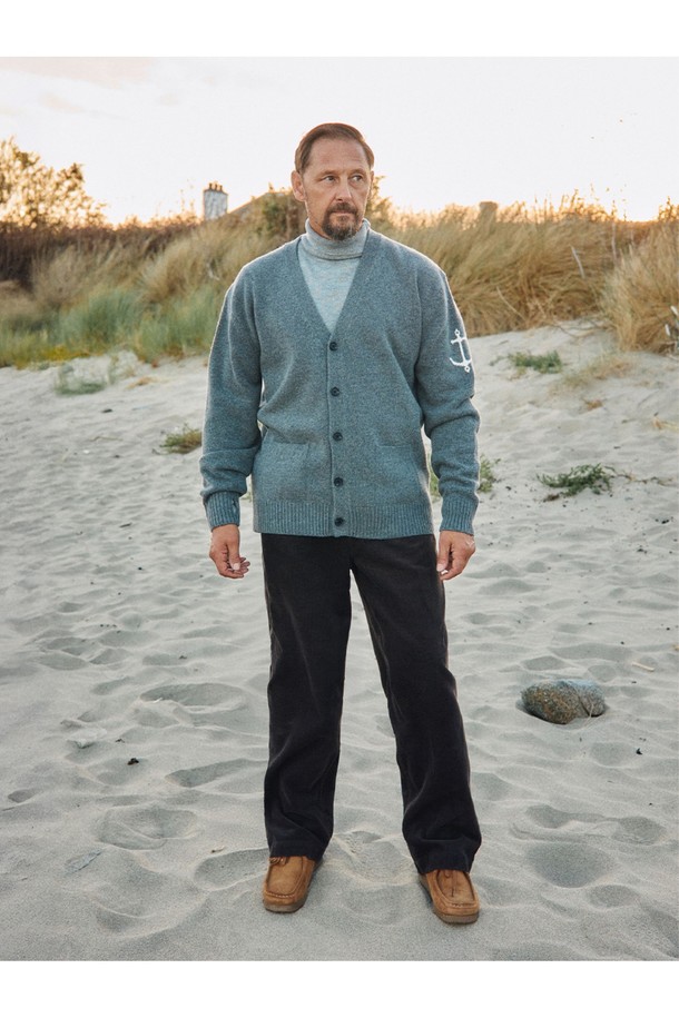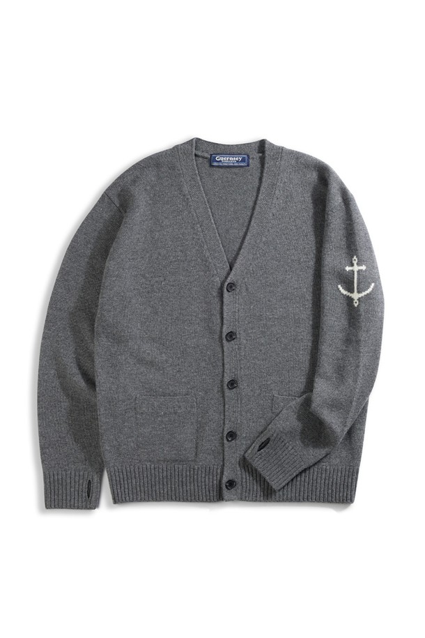 슈퍼 파인 메리노울 브이넥 가디건 - 미드 그레이