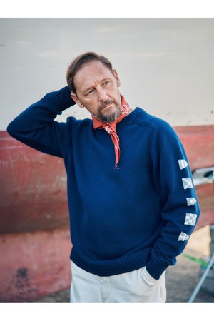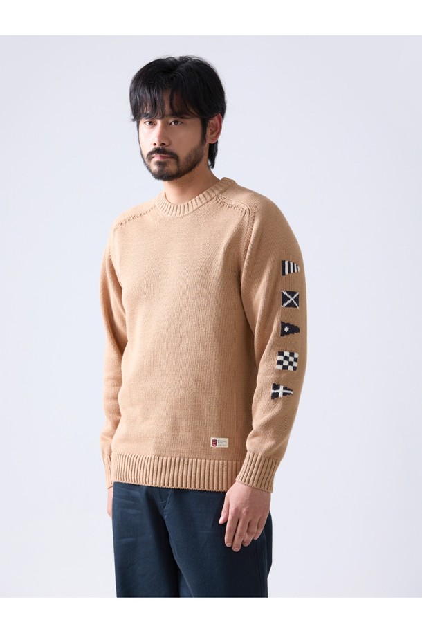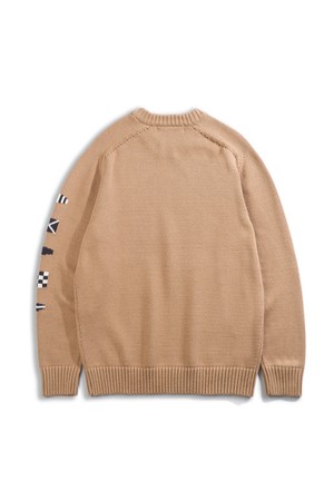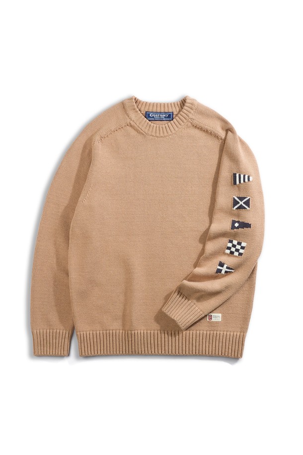 헤비코튼 시그널 플래그 스웨터 - 카멜