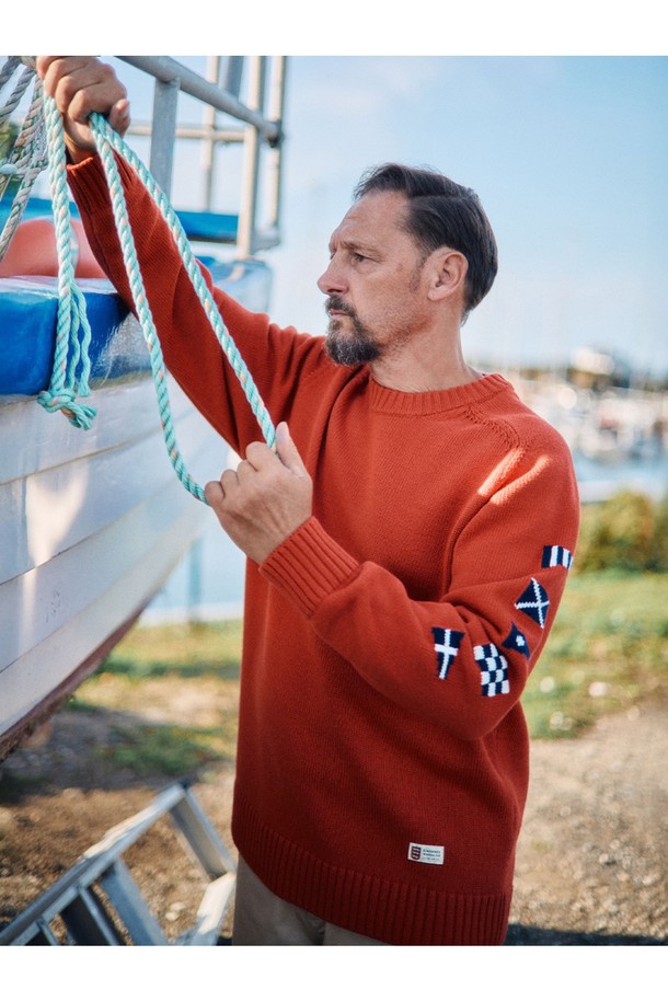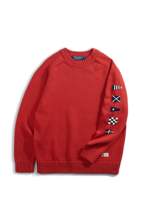 헤비코튼 시그널 플래그 스웨터 - 오렌지