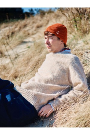셔틀랜드울 쉐기독 홀가먼트 스웨터 - 살몬 오렌지