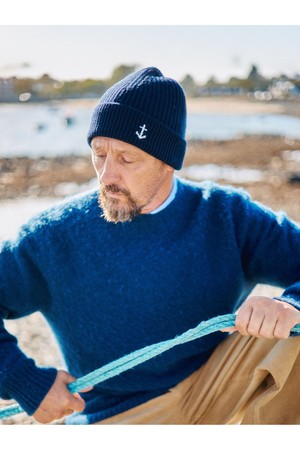셔틀랜드울 쉐기독 홀가먼트 스웨터 - 딥 블루