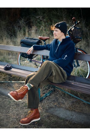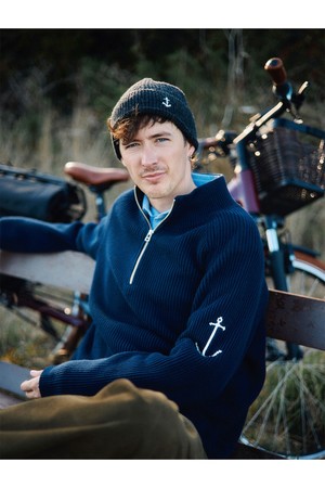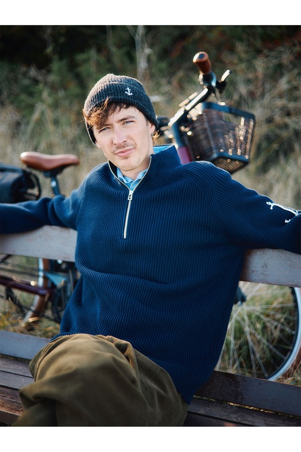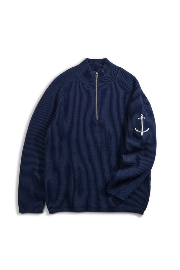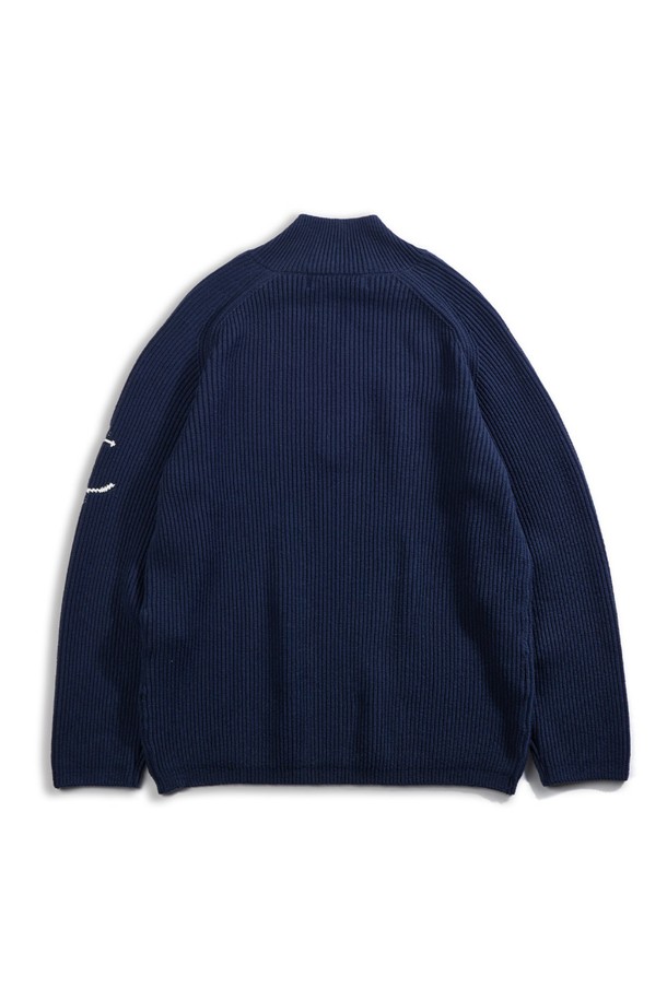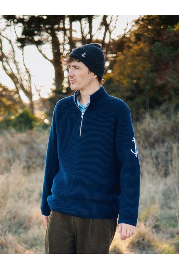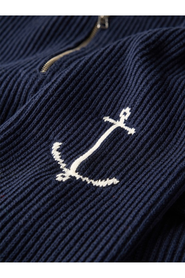 코튼 브리티쉬 립 하프 집업 스웨터 - 네이비