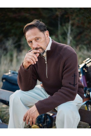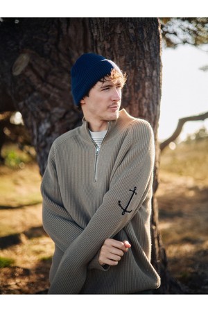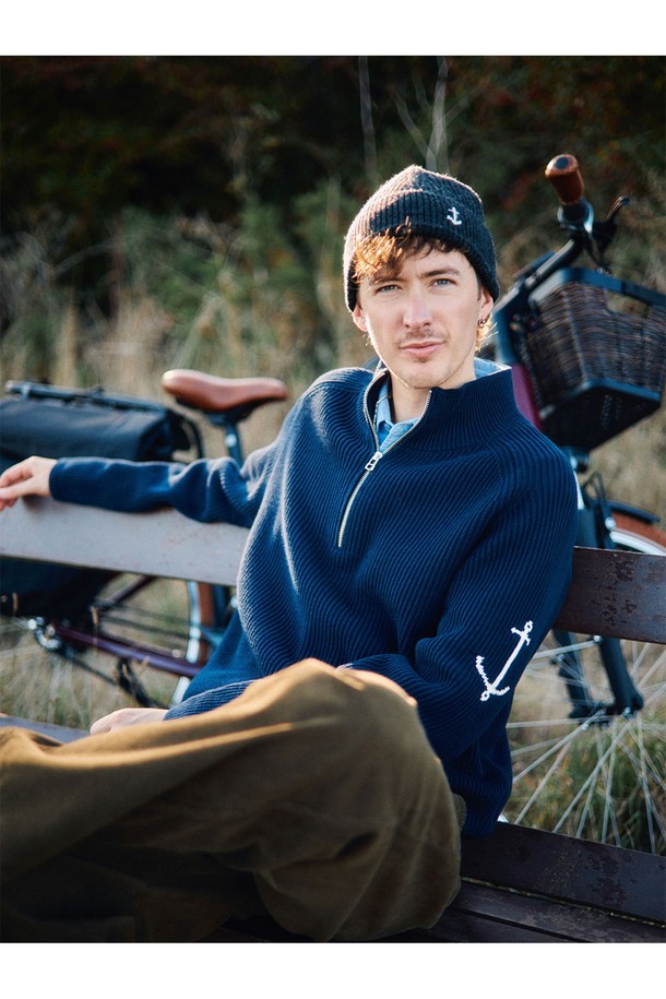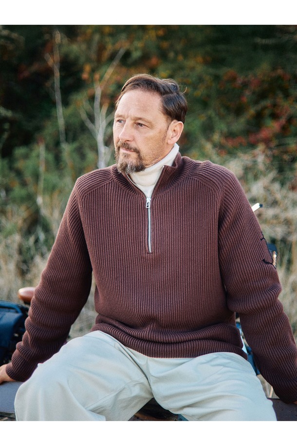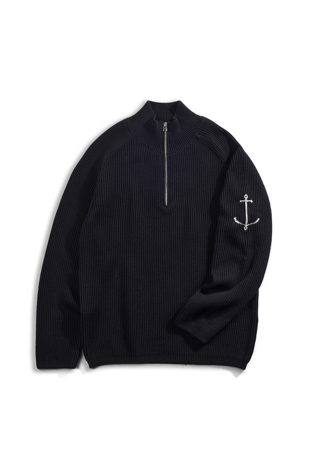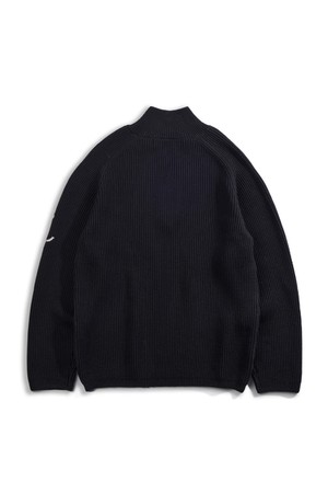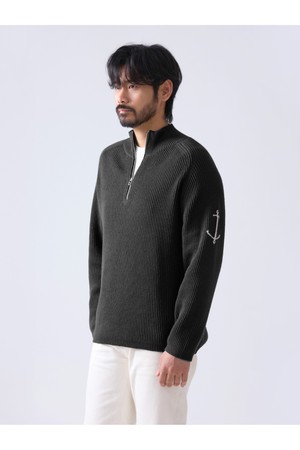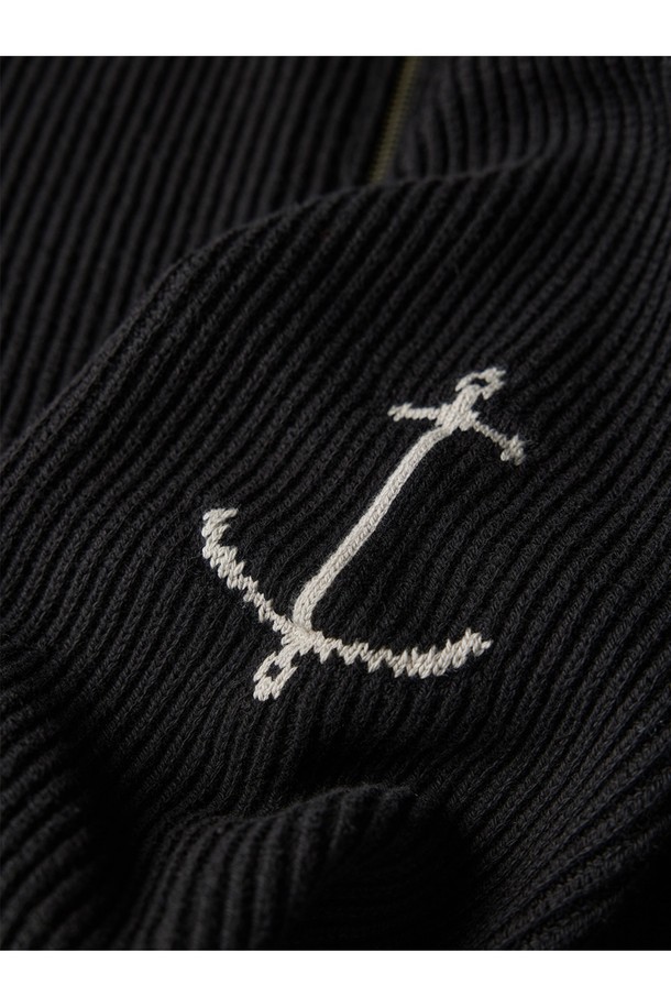 코튼 브리티쉬 립 하프 집업 스웨터 - 블랙
