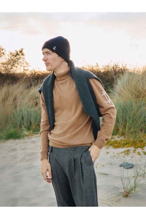 슈퍼 파인 메리노울 터틀넥 니트 - 카멜
