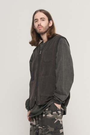 CORDUROY AMEKAJI POCKET VEST (CHARCOAL)