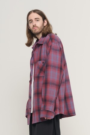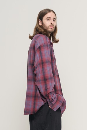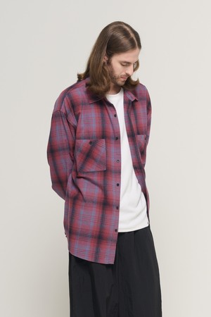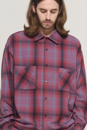 PEACH COTTON FLANNEL OVERFIT CHECK SHIRT (WINE)