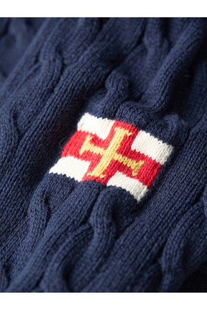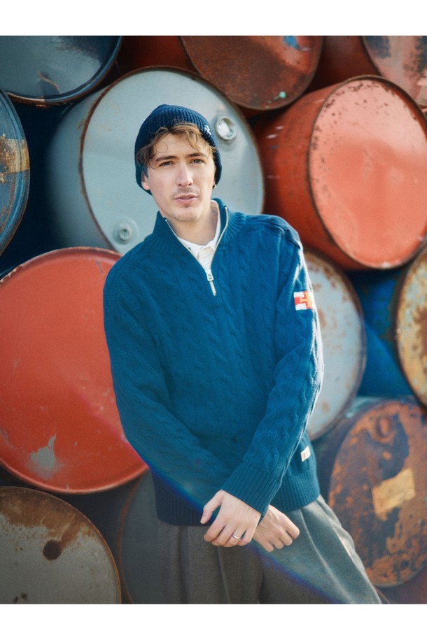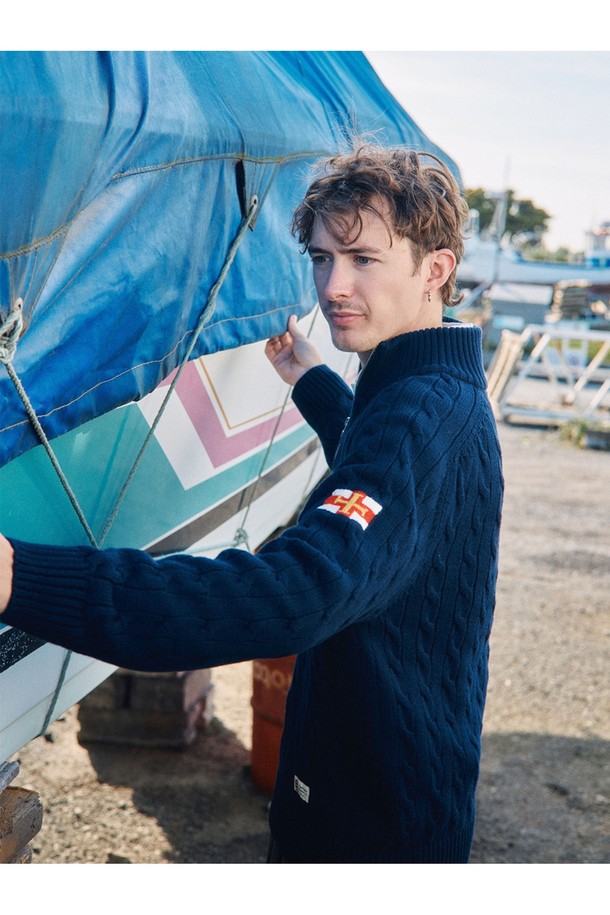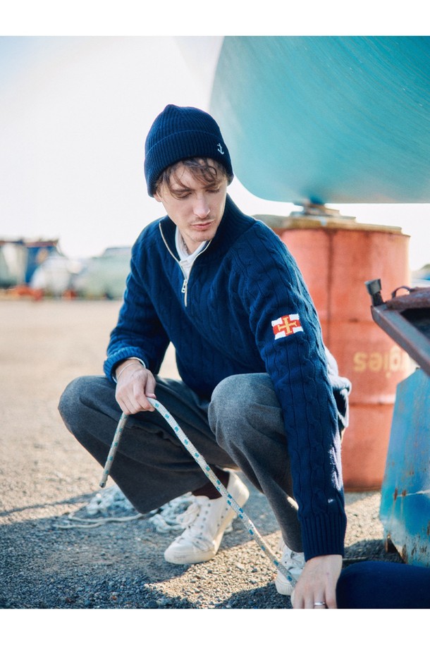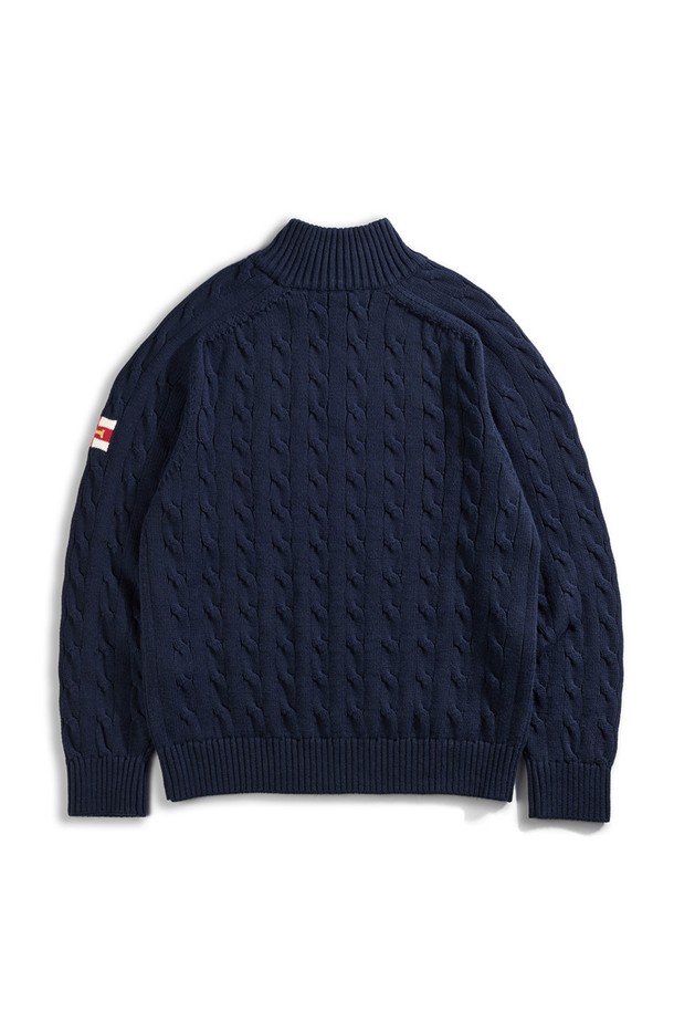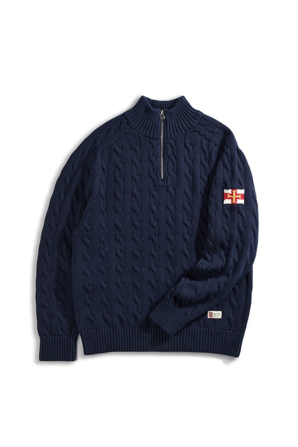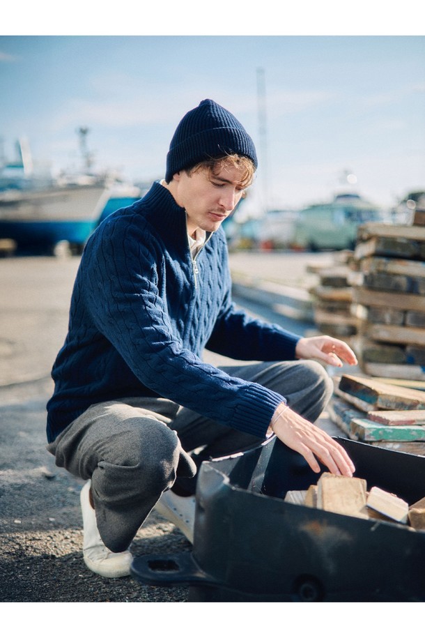 헤비코튼 케이블 하프 집업 스웨터 - 네이비