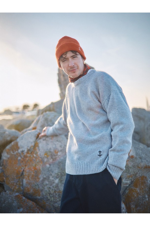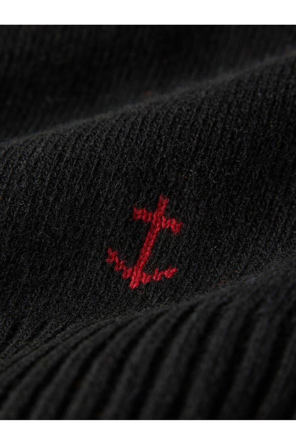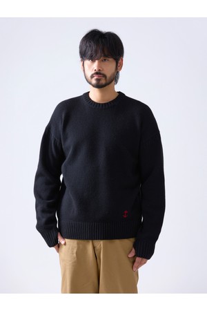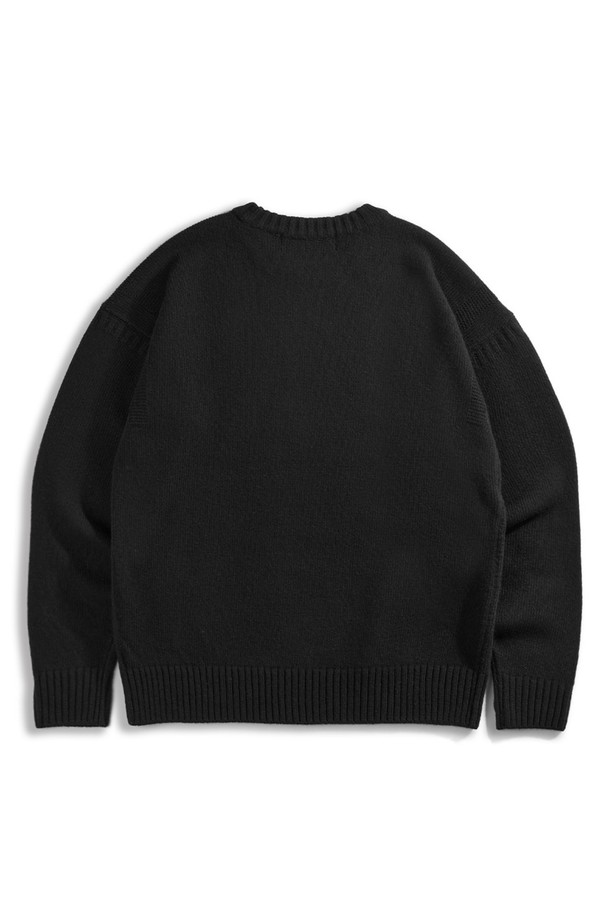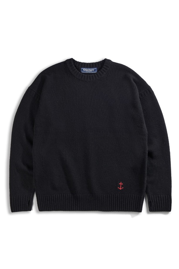 슈퍼 파인 메리노울 크루넥 건지 스웨터 - 블랙