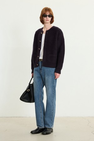 Gold Button Mohair Cardigan (Navy) TNSW5F103N2