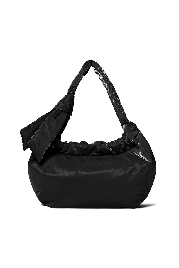 [UNISEX] 글로시 리본 드로우스트링 숄더백 - 블랙 HDWK023BXZBLK