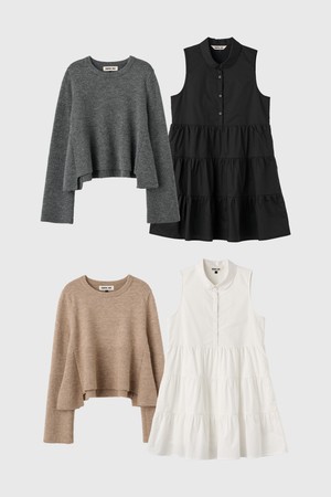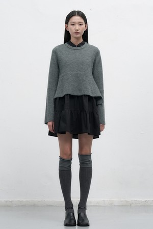 [25FW] WOMAN 니트 레이어드 러플 셔츠 원피스 [2COL] / WBE4L15510