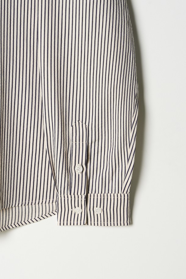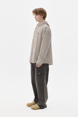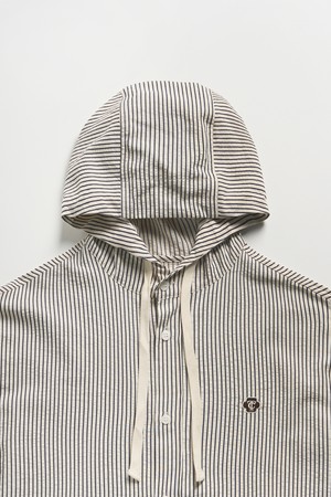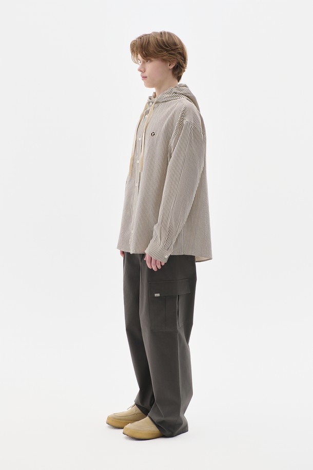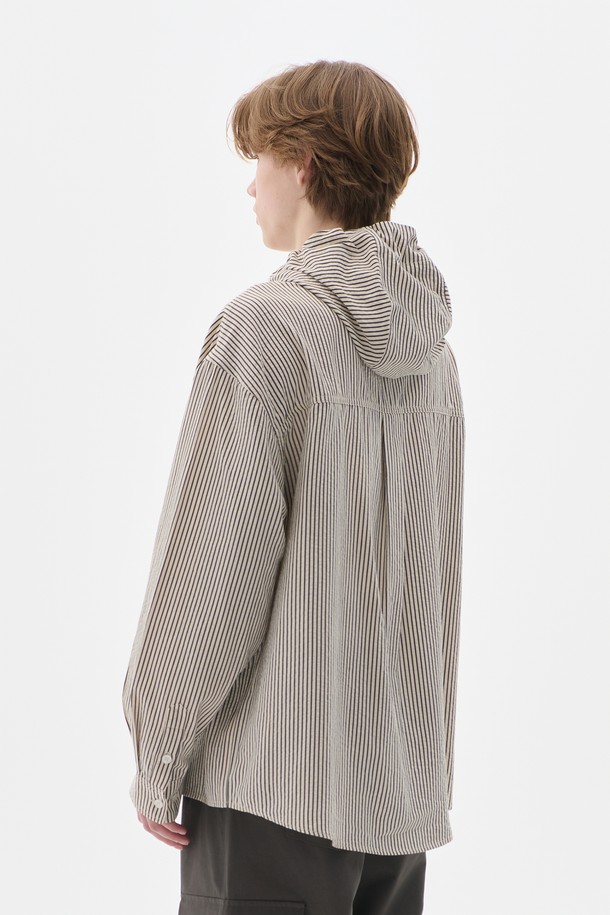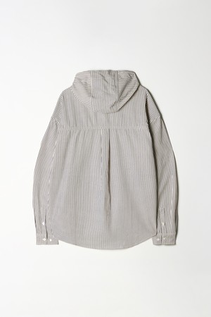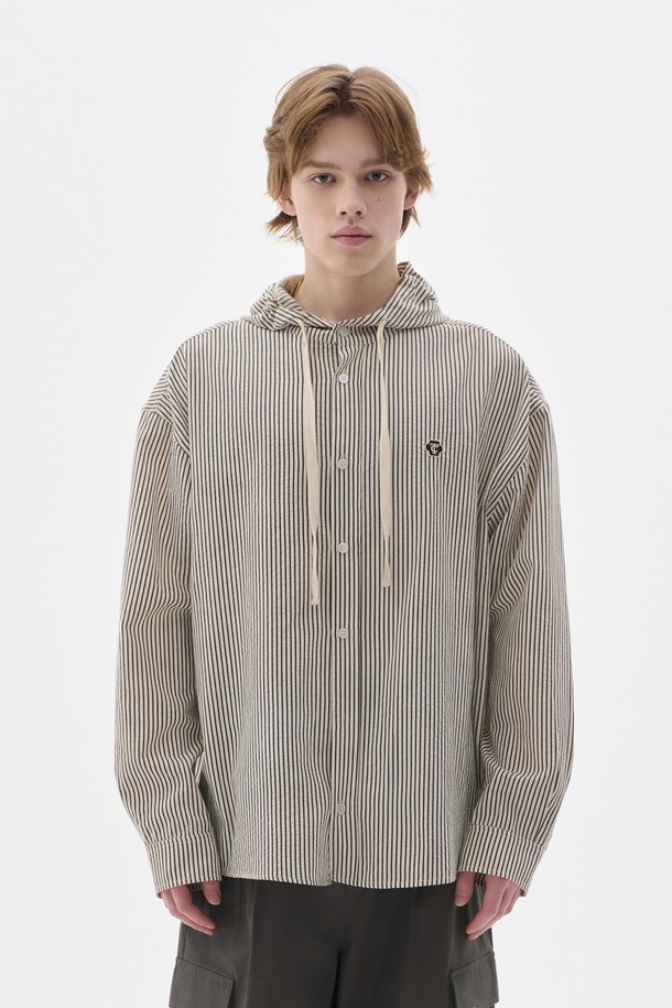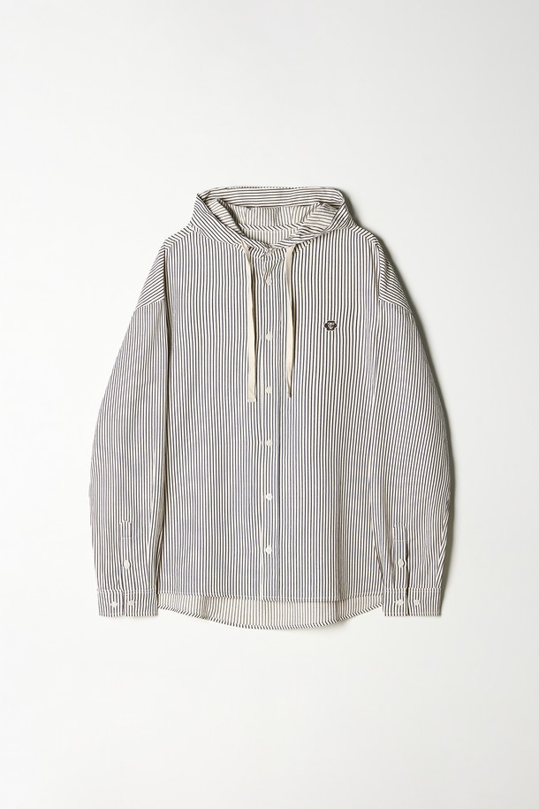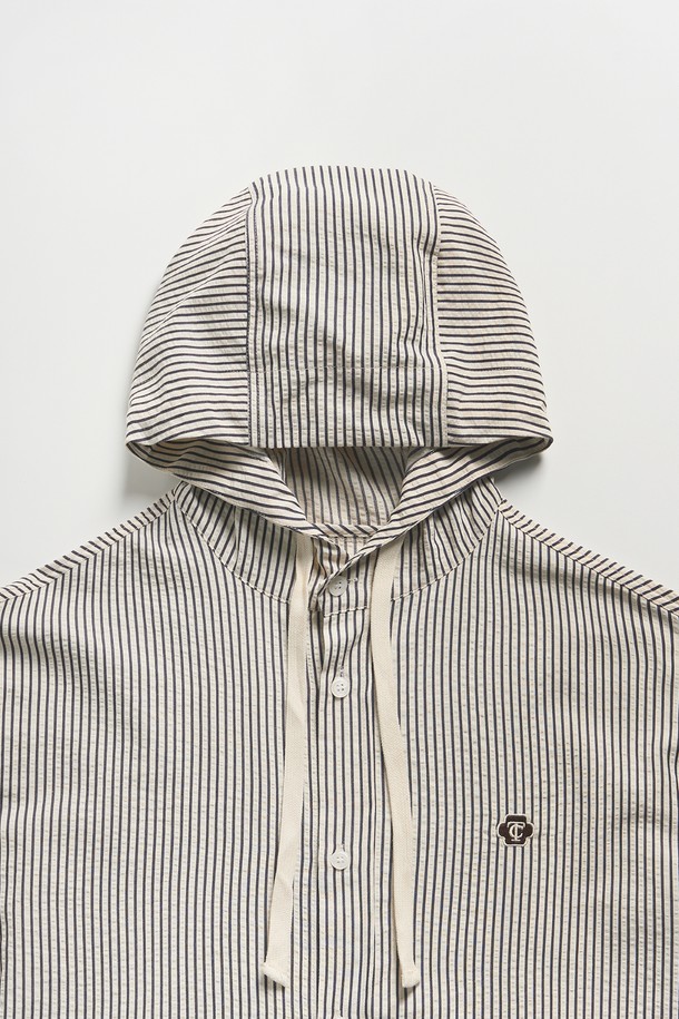 TC로고 후드 스트라이프 오버핏 셔츠 블랙