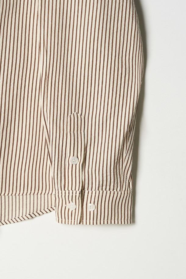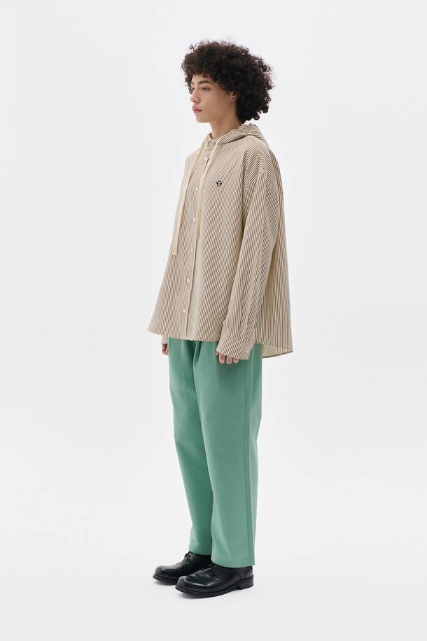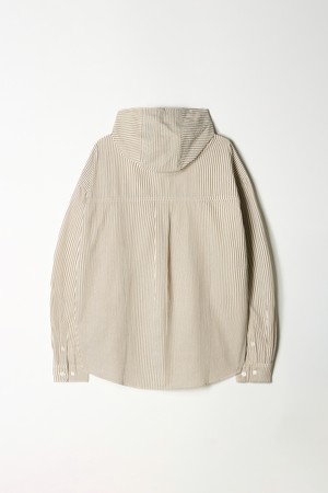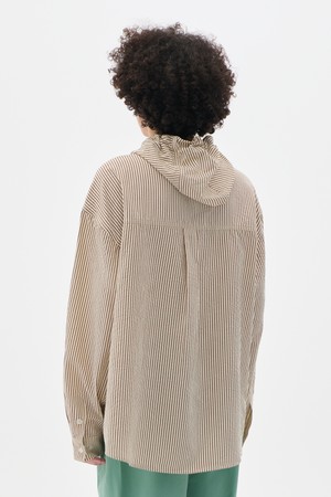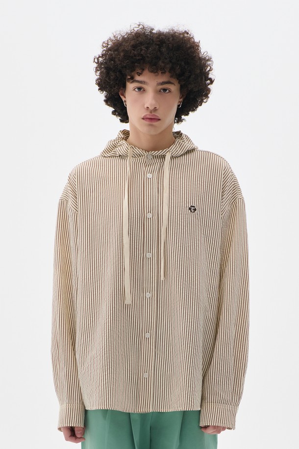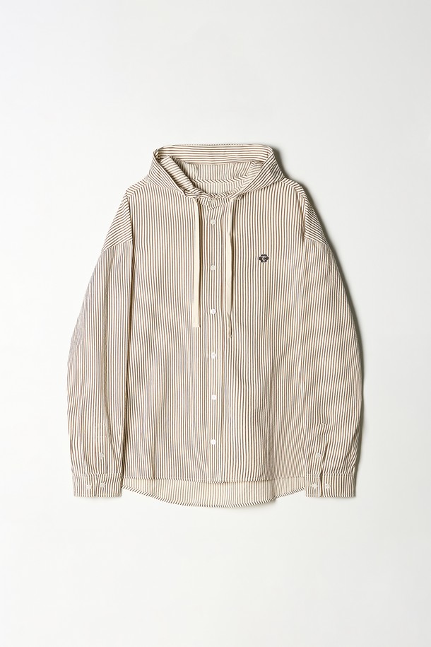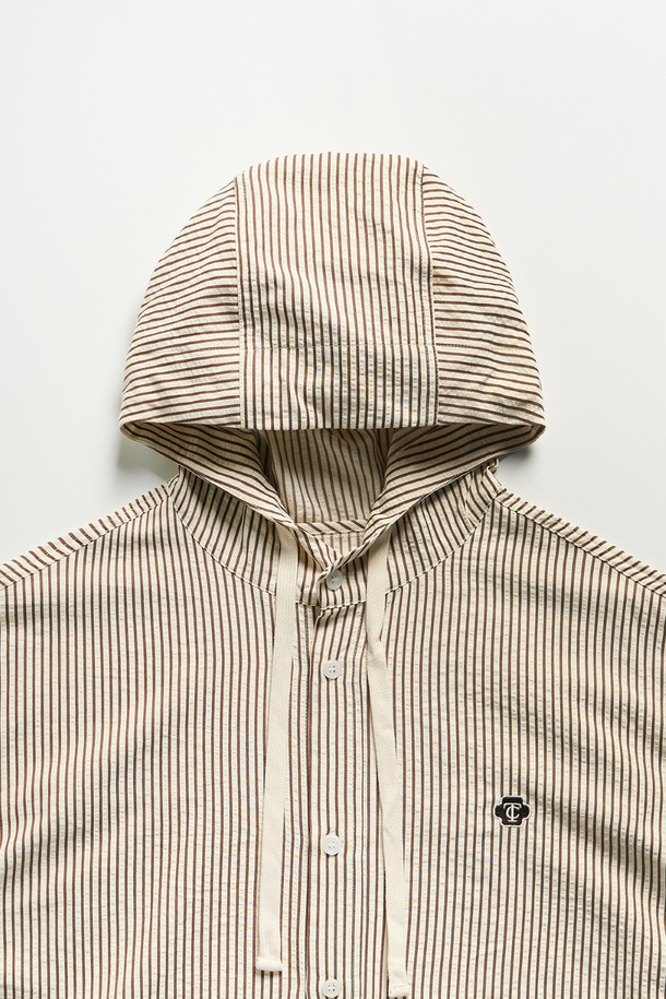 TC로고 후드 스트라이프 오버핏 셔츠 브라운