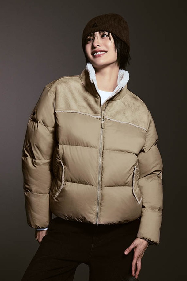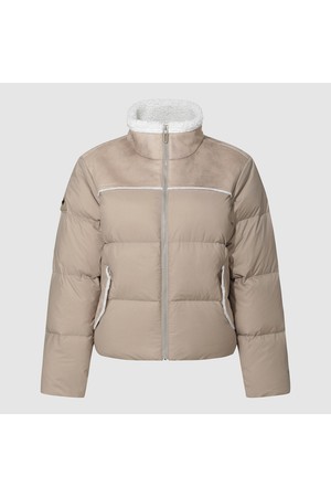 여성 루즈핏 페이크 무스탕 다운 자켓 - 베이지 QQ422ODJN6