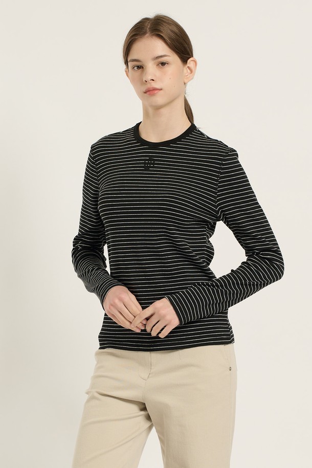 [25FA] 스트라이프 긴팔 티셔츠 - BLACK B5C7X40899