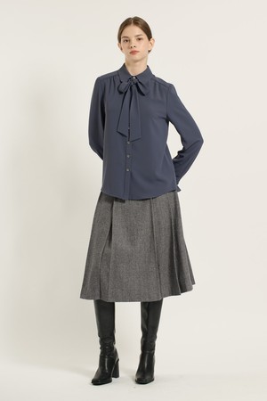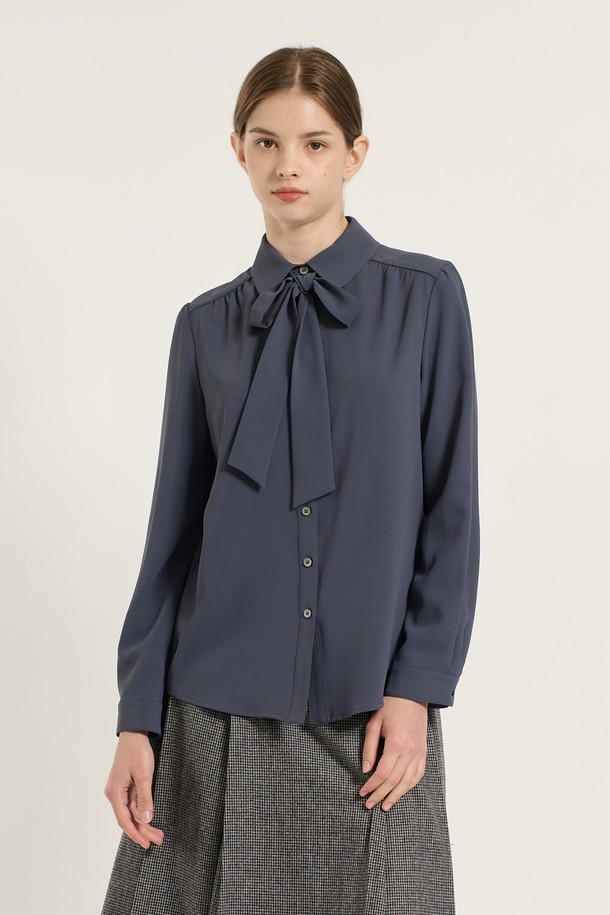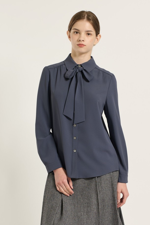 [25WT] 셔츠카라 타이 블라우스 - DARK BLUE B5D9B40454