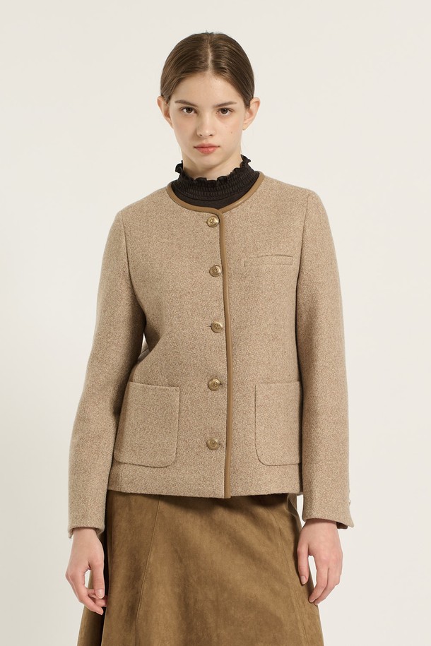 [25WT] 라운드넥 트위드 자켓 - M BEIGE B5D9J10672