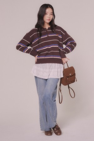 스트라이프 니트 카라 티셔츠 (2color)
