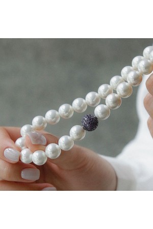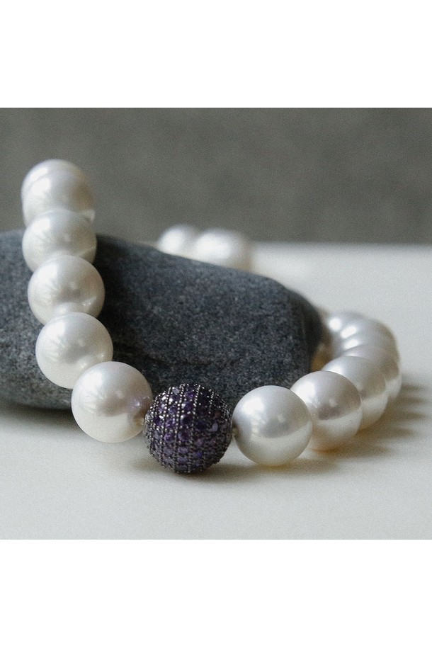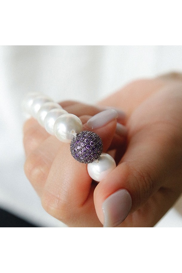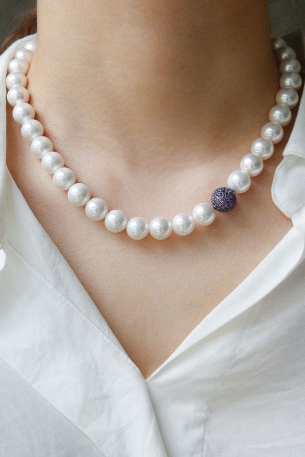 퍼플 파베 큐빅볼 10mm 진주 목걸이 Bn0573