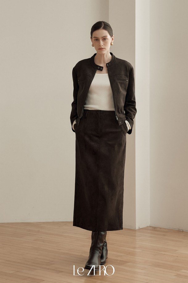 르제로 스웨이드 롱 스커트 / 다크 브라운